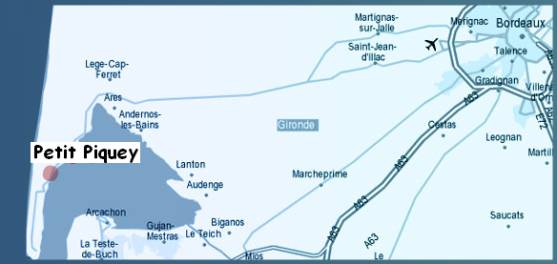 Lorsque vous êtes sur la rocade bordelaise, suivez la direction LEGE CAP FERRET Suivez toujours cette direction (Ne pas suivre Arcachon !!!) Après environ 45 minutes de trajet sur la D106, vous traverserez des villages nommés « Claouey », « Le four », « Les jacquets » puis « PETIT PIQUEY ». Ralentissez, vous y êtes bientôt !!... |