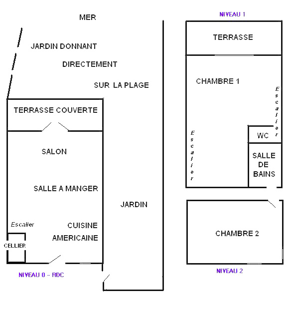 Maison les pieds dans l'eau (en première ligne) sur 3 niveaux avec vue sur la mer et jardin donnant directement à la plage |